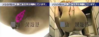 中腰でカメラにマ○コを突き出して放尿してます!別のトイレでもアッパレまる見え!制服ムスメもアソコまる見えでブリブリ・・・